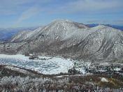 アンテナの林立する山頂はちょっと興ざめだが、短時間に登れてこの展望は申し分ない。富士山、そして八ヶ岳、浅間から草津白根、谷川連峰、上州武尊といつまでも見飽きない光景だ。眼下には凍結した大沼と樹氷の駒ヶ岳から黒桧山への稜線が輝いている。